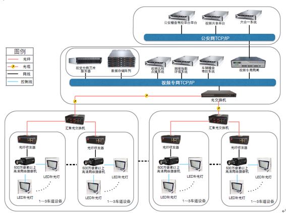 系統(tǒng)通過視頻采集設(shè)備對(duì)道路交通事件實(shí)時(shí)監(jiān)控并上傳至中心服務(wù)器,監(jiān)控中心的智能視頻處理軟件準(zhǔn)確的分析出交通流量、占有率、排隊(duì)長(zhǎng)度、車頭時(shí)距、速度等交通基礎(chǔ)數(shù)據(jù)及各種違法行為,通過各業(yè)務(wù)邏輯處理單元實(shí)現(xiàn)各類交通管理業(yè)務(wù)的處理并提供各類外部數(shù)據(jù)接口。交通仿真平臺(tái)對(duì)各路段緩行、擁堵、排隊(duì)長(zhǎng)度等交通事件進(jìn)行仿真分析,制定出對(duì)應(yīng)的交通策略,適時(shí)調(diào)整控制交通信號(hào)燈的信號(hào)配時(shí)實(shí)現(xiàn)區(qū)域聯(lián)動(dòng),有效疏導(dǎo)緩解交通擁堵,也可為交通指揮中心提供輔助決策。