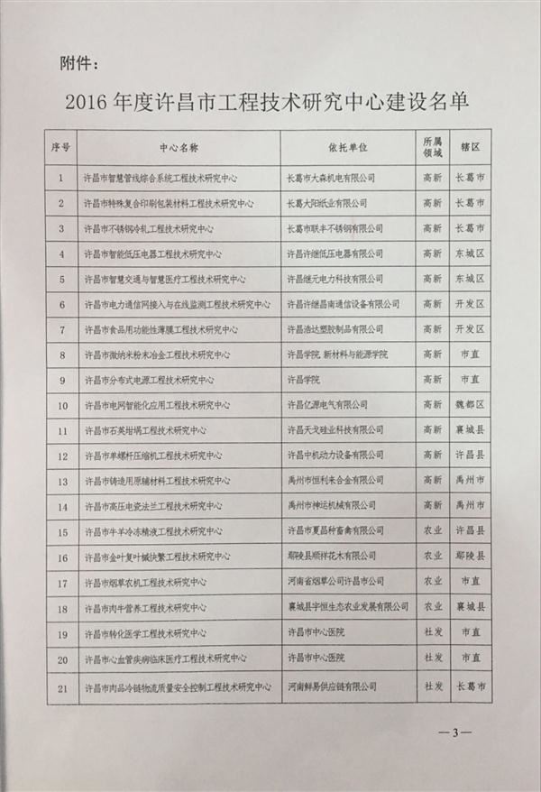 熱烈祝賀我公司成立許昌市工程技術(shù)研究中心